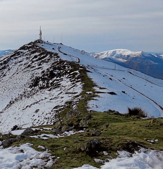 Garaziraino, berde, baina Ezterenzubi aldera, elurra mendian behera... Gertuago, Laina (869 m) eta Haltzamendi gailurrak (813 m), horiek ere zuri-zuri, Bidarrai eta Ortzaize aldera jausten diren amildegi malkartsuen zaintzaile.
