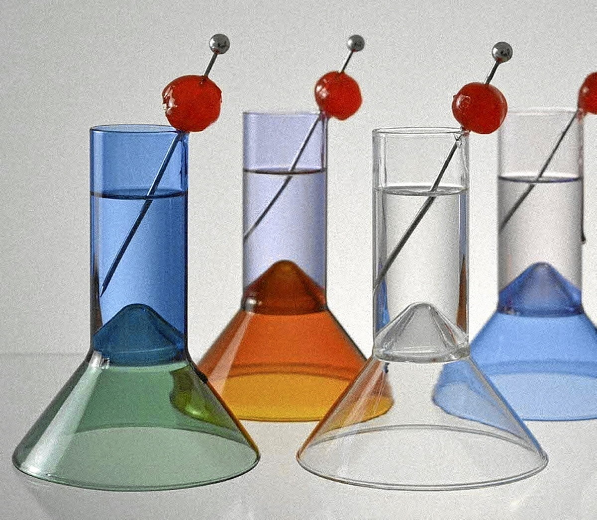 En breve comenzaremos la temporada de cenas y reuniones otoñales en casa. Es una temporada perfecta para cocinar, comer y beber cosas ricas, tener buenas conversaciones y presumir de copas de cocktail como estas que acaban de lanzar los milaneses TRAGA. La familia Martini Shot Glass ha sido diseñada por Daniel Nikolovski, natural de Skopje, Macedonia del Norte, una ciudad conocida por su arquitectura brutalista, que ha inspirado esta cristalería bifuncional con la que apreciar doblemente cualquier trago. El vaso minimalista se caracteriza por una forma cónica que se fija sobre una base cilíndrica, recordando la silueta familiar de un vaso de vermut. En lugar de estrecharse en un soporte delgado, el cilindro no está sellado, lo que le permite darle la vuelta a la cristalería y convertirla en un vaso de chupito. Cada vaso viene con un pincho de acero, una necesidad si eres fan de añadir guarnición a tu bebida. Las piezas están fabricadas en vidrio de borosilicato, un material apreciado por su durabilidad y resistencia a la temperatura. También es un tipo de vidrio sostenible que se puede volver a fundir. Disponibles en cuatro colores: ámbar y lila, verde azulado y azul, azul y rosa y transparente. Los hermosos recipientes sirven una iteración moderna de dos tipos de vasos para beber, elevando su colección de utensilios de bar con sus colores apagados y su elegante diseño.