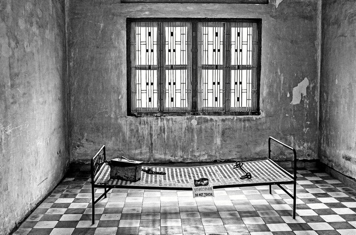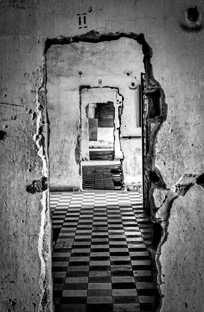 Phnom Penh hiriburuko erdigunean dago Krimen Genoziden Tuol Sleng museoa, Pol Pot-en buruzagitzapeko Khmer Gorriek S-21 izena eman zioten atxilotze eta tortura zentroa. Derrigorrezkoa da museoan barneratzea Kanbodiako historia hurbila ulertu eta Khmer Gorrien diktadurak iraun zuen urte odoltsu haietan herrialdeak jasan zuen sarraskia ezagutzeko. Irudietan, tortura zentroko korridoreak eta galdeketetarako eta torturarako erabili ziren gelak.