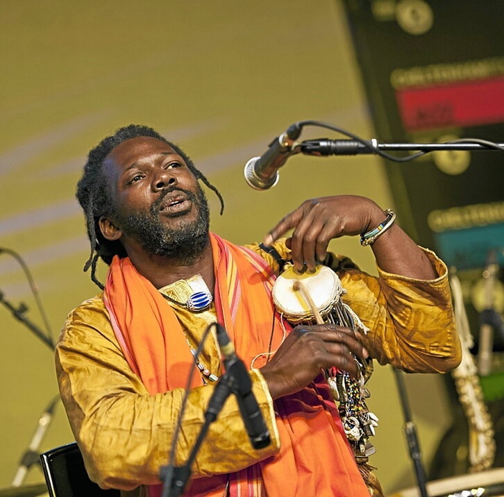 Nacido en Bamako (Malí), Baba Sissoko es el maestro indiscutible del tamani -el tambor parlante original de los pueblos wolof y mandinga, y que se caracteriza por sus reducidas dimensiones produciendo un tono mucho más alto que otros tambores parlantes-. Un instrumento que empezó a tocar de niño, gracias a las enseñanzas de su abuelo Djeli Baba Sissoko. El músico toca también ngoni, kamalengoni, guitarra, balafón, calebasse, sildrum y además canta. Pertenece a una gran y antigua dinastía de griots de Malí. Un espectáculo único con fuertes tintes de blues, en el que la tradición se mezcla con los ritmos de la música afroamericana con sonidos de afrobeat, funk y psicodelia.