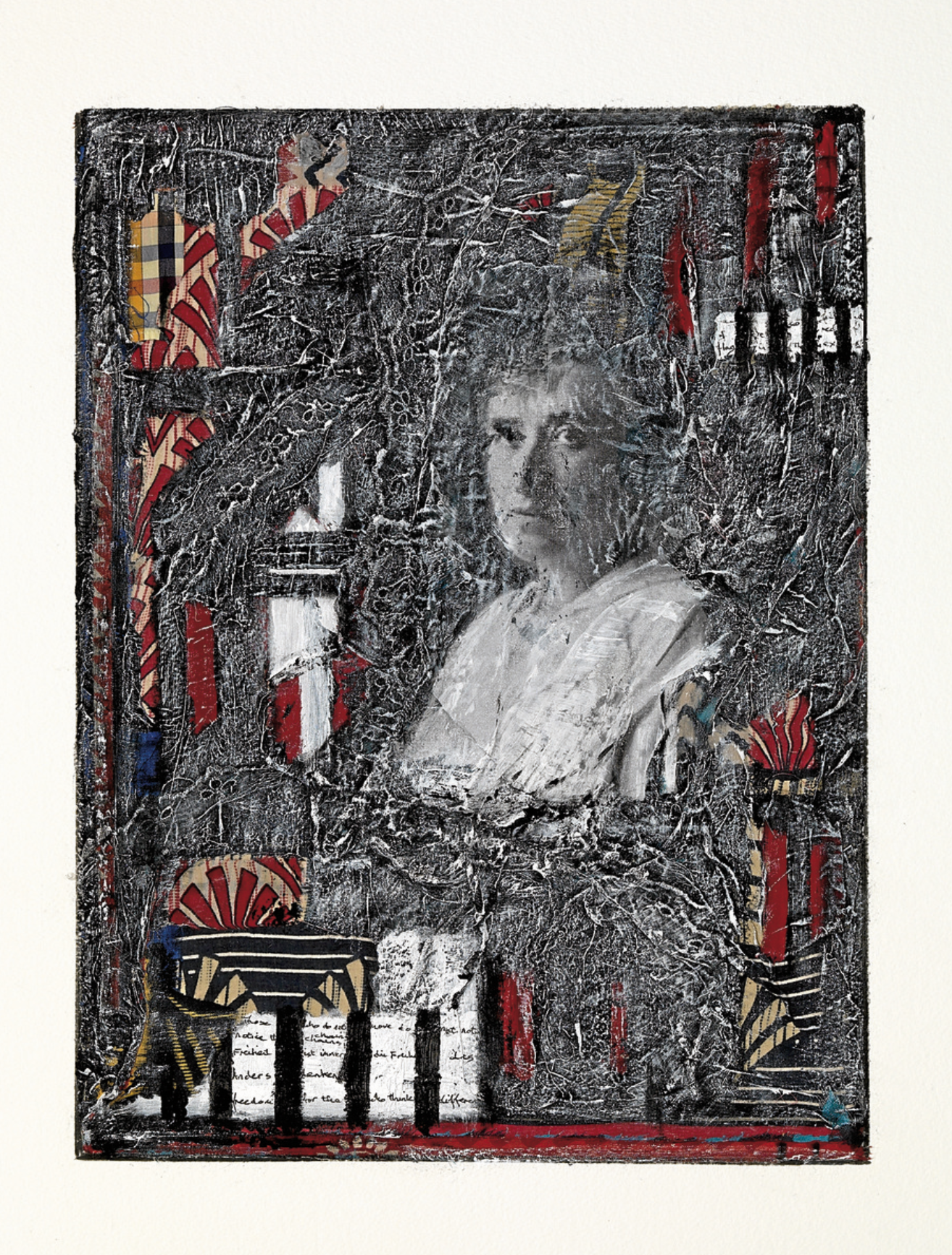 Mauka bat, botoi bat, oihal bizidun edo ilunezko erretaula bat, Afrikako, Asiako, Europako eta Amerikako estanpatu bat, mundu batetik zikindutako, urratutako, erretako, gainmargotutako, partzialki ezabatutako arrasto bat: «Horrek guztiak ikuslea bere nortasun propioarekin baino gehiagorekin bizitzera eta erretratuari erantzutera bultza zezakeen, agian hau ere konplexua, korapilatua eta estratifikatua zena», adierazi du. Erretratuak gogora ekartzen duen bizitzaren dentsitate material beraren zama eraman beharko balu bezala. Aipatzen duen adibidea adierazgarria da: Nelson Mandelaren argazki bat Robben Islanden, bere preso uniformea josten. Ez zuen erabili, baina bere logikak serie osoa bustitzen du: «Pentsatzen dut nik nahi nuela erretratuek konponketa eta erresistentzia lan horren hari nagusia izatea».