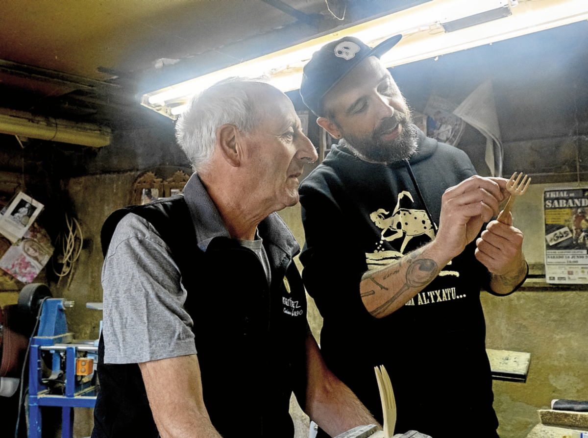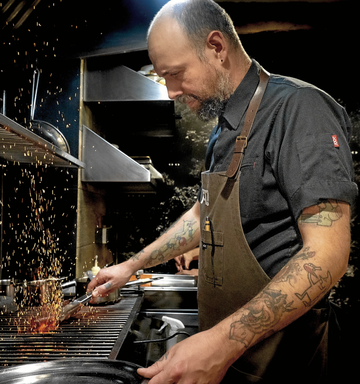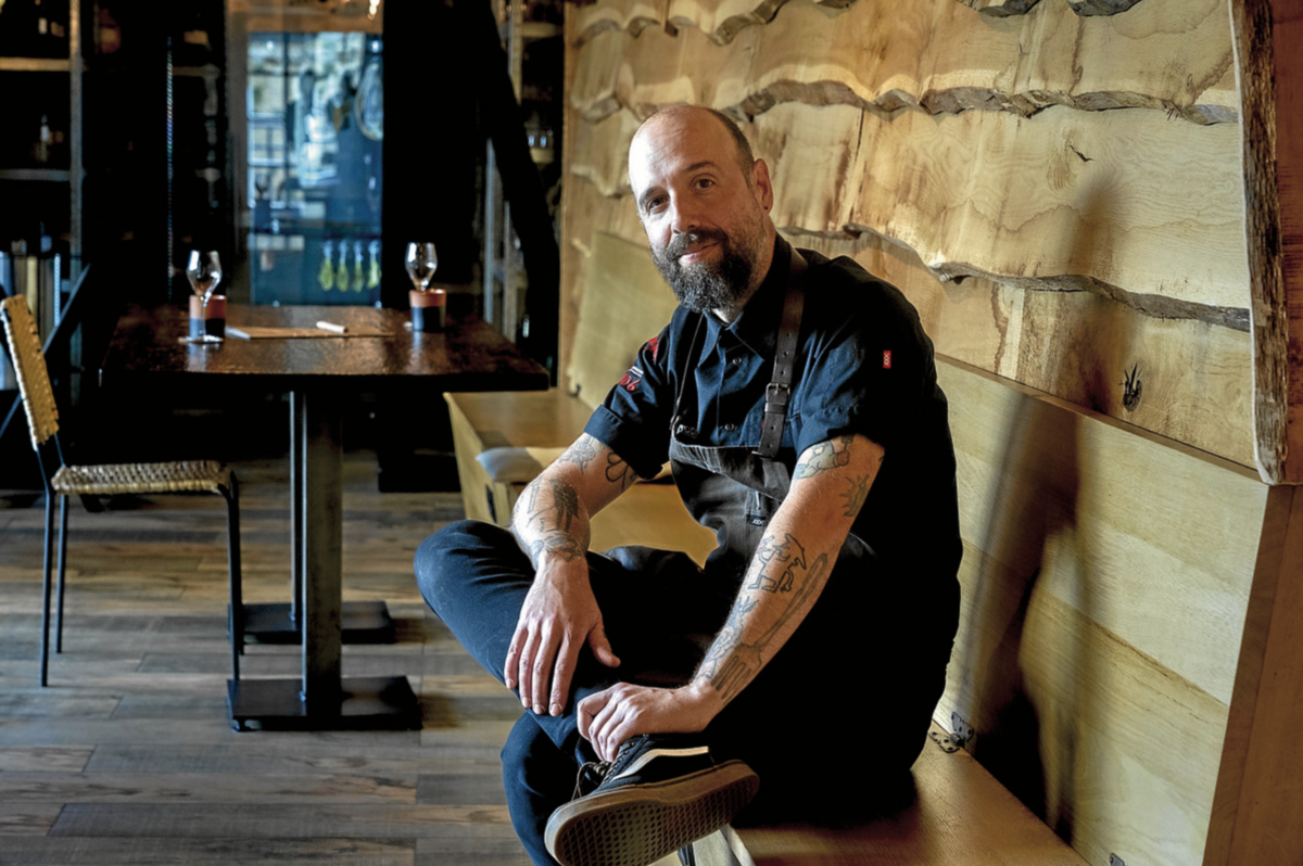 DEC. 21 2025 UN «OUTSIDER» QUE RESETEA LA COCINA VASCA DESDE LA MONTAÑA ALAVESA Interview EDORTA LAMO Cocinero del restaurante Arrea! «Ser los más salvajes tiene su belleza, y yo ahí me siento muy cómodo, porque es coherente con lo que pienso, digo y hago» (Raúl Bogajo | FOKU) Iñaki Soto {{^data.noClicksRemaining}} To read this article sign up for free or subscribe Already registered or subscribed? Sign in SIGN UP TO READ {{/data.noClicksRemaining}} {{#data.noClicksRemaining}} You have run out of clicks Subscribe {{/data.noClicksRemaining}} Edorta Lamo (Kanpezu, 1979) pasó hace siete años de ser un cocinero pirata en Donostia a ser un furtivo en la montaña alavesa. Él, que había sido un apóstol de la cultura urbana, de la necesidad de ocupar espacios en el mayor escaparate de la cocina vasca, se hartó. Abrió Arrea! en Kanpezu, su pueblo natal, y cerró A Fuego Negro en Donostia. La capital guipuzcoana pintaba mal y empezaba a ser irreconocible, también en lo gastronómico. Y eso que aún no se habían implantado las filas para comer pinchos o las tiendas de tarta de queso crema. Como en la canción de La Polla, Lamo se fue al campo y abandonó la ciudad. Es verdad que, en un sentido, lo hizo para encontrar la paz, pero esta no es la historia de un hippy, sino la de un punky de la cocina. A Fuego Negro fue un experimento contracultural y rompedor que, en cierta medida, convulsionó el panorama de pintxos donostiarra. «Necesitaba resetear», afirma rotundo Lamo. Le costó cuatro años convencer a la gente del dinero -«al mal»- y en ese periodo fue perfeccionando su propuesta. Hasta el punto de convertirlo en un auténtico cuento o, mejor dicho, en un cuento auténtico. Eso es Arrea!, un lugar mágico, perdido, sorprendente y auténtico. Un restaurante especial, único y vasco que rompe moldes con cada uno de esos adjetivos. «Coherencia», «radicalidad» y «honestidad» son valores que Lamo reivindica continuamente. Es un outsider sociable, lo que le hace tener grandes amigos entre sus colegas, pero también se considera radical, «muy radical», lo que le mantiene al margen de la corriente general. Lo que hace en Arrea! es «especial en el sentido de raro», y no tiene problemas en defenderlo así. Raul Bogajo | FOKU Es el camino que le llevó a lograr una estrella Michelin con Arrea! en 2023, más una estrella verde ese mismo año, y a ser un referente para cocineros jóvenes. Javi Rivero, cocinero de AMA y el que nos introdujo hace unos años Arrea!, ha definido a Edorta Lamo como «una persona con una visión y compromiso con su entorno que no tiene parangón. Con un corazón que no le cabe en el pecho, no duda en compartir conocimiento. Es un genio entre genios». Nuestra visita a Kanpezu lo confirma. ORIGEN IGUAL A DESTINO Este viaje tiene una prehistoria, que explica mucho de lo que hoy es Arrea!. Después de trasladarse con la familia de Kanpezu a Gasteiz, de joven Edorta quería ser dibujante o actor, algo que aterraba a su madre. ¿Bellas Artes? Por suerte, habrá que decir, no iba bien en los estudios, así que, tras pasar por el instituto, terminó en la Escuela de Hostelería de Oñati. «Terminé yendo a cocinar a ver si por esa vía encontraba mi camino», reconoce. También tiene un aviso para quienes empiezan: «En un principio nadie se lo pasa bien en este oficio, porque es duro y sacrificado». De Oñati se fue a EEUU, «sin papeles, toda una experiencia». Le dijeron que duraría un mes, «y ahí es cuando decidí que no volvía ni ‘jarto’, así que las pasé putas, pero ya había decidido que no volvía a no ser que me secuestrasen, descuartizasen y enviasen en una maleta. Y así pasé un año y medio». Estuvo en Newark, New Jersey, una ciudad dura con un fuerte conflicto racial. «Hice de todo, terminé pintando pistas de tenis para ricos», recuerda. Al regresó a Europa, Lamo se fue a cocinar a Sierra Nevada y de ahí bajó a Granada, donde coincidió con su hermana, Amaia. Tras trabajar en la Alhambra, la ficharon en el Botánico, y se llevó a su hermano con ella. Allí se forjó una sociedad que luego se trasladaría a Donostia y que hoy comanda Arrea!. Toda la gente habla maravillas de Amaia -«la cabeza, la lista de los dos», resume Edorta-, y podemos certificar que es atenta y eficaz. Lleva la parte empresarial y las reservas. Junto con Leire, la pareja de Edorta, son las personas que acompañan al cocinero en este camino. Edorta cocinando a la brasa. Raul Bogajo | FOKU DONOSTIA LE MATA, PERO LE DIO LA VIDA A pesar de que en esta historia Donostia surge a menudo como la némesis de Kanpezu, Lamo guarda buenos recuerdos de su etapa donostiarra. «Aprendí y disfruté mucho con ese concepto de la cultura del producto, que es tan guipuzcoano. De eso aprendí mucho con Pablo Loureiro, de Casa Urola. Esos pescados gigantes, tan bien hechos…». De ahí, Lamo pasó a Arzak, con Xabi Gutiérrez, de quien aprendió «a ver las cosas desde cero, la creatividad entendida como un proceso, que es lo que más me ha gustado». Y lo que ha terminado por definirle. «Creo que es para lo que más sirvo en la cocina. Al final, tienes mano porque te has empeñado muchos años en trabajar en esto, pero lo que creo que mejor se me da es esa parte creativa, el cómputo general del plato y de todo lo que le acompaña». Hace poco regresó a Donostia y vio que sus peores augurios se habían cumplido. No ha vuelto al local de A Fuego Negro; «me dolería ver en lo que se ha convertido, visto lo que ha pasado con Donostia», confiesa. ¿Cómo recuerda ese impulso para dejar Donostia y venir a Kanpezu? Si hay algo que me ha traído a Kanpezu, además de la familia, es que a mí me aturulló la cultura gastronómica donostiarra. Por las mismas razones por las que fui a la Meca de la gastronomía -es donde más se habla de cocina, donde más se sabe de producto, donde más sociedades gastronómicas hay, donde más cocineros…-, eso mismo luego me vino en co