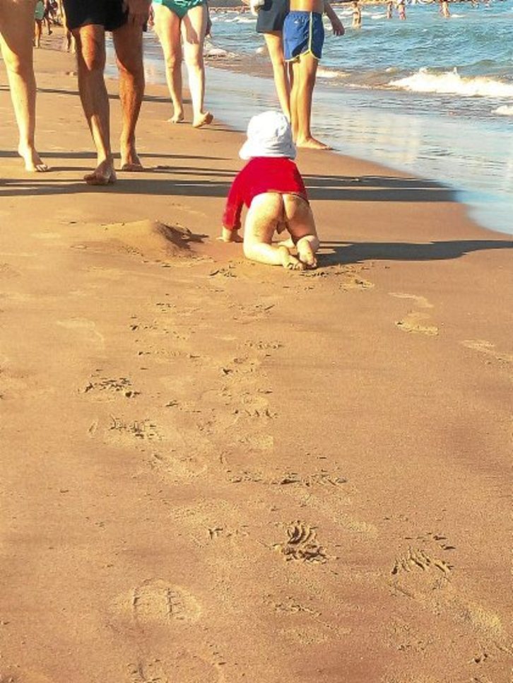 «Hankartea airean eta ibili Mediterraneoan» esaldiarekin laburbildu du Gema Lakuntzak bidali digun argazkia. «Ama naizenetik –argitzen digu– askatasuna hitzak zentzu berri bat hartu du niretzat; ni naizelako nire semeek egin, jan, ikusi... dezaketena kontrolatzen duena eta estatus honetatik semeei beren bidea egiten uztea eta ikustea zoragarria da, benetan!!!». Guri txiki honen irudiak bizitzarekiko jakin-mina, askatasun gosea, ezagutzeke dagoenaren erakargarritasuna... denak biltzen dituela iruditu zaigu. Imanol Urbietaren kanta pare bat ekarri dizkigu gogora: “Txiki txiki txikia” («Eskuak ukitzeko, bi oinak ibiltzeko. Handitzen, handitzen...») eta “Bakarrik eta libre” izenekoa («Bakarrik eta libre badoa. Bakarrik eta libre gaztea. Poltsikoan eskuak, oinak arrastaka. Luzea da bidea. Luzea da»).