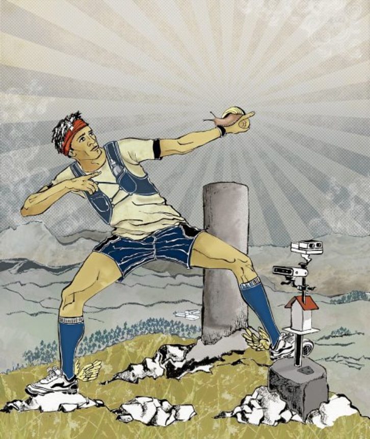 4) Norbait korrika ikusten dugun bakoitzean, geldiarazi eta galdera inozoren bat egingo diogu: «Non hartzen da tontorrerako bide alternatiboa?», adibidez. Komeni da galderaren bat aurretik buruan eramatea, korrikalariak nabaritu ez dezan unean bertan asmatzen ari garela.