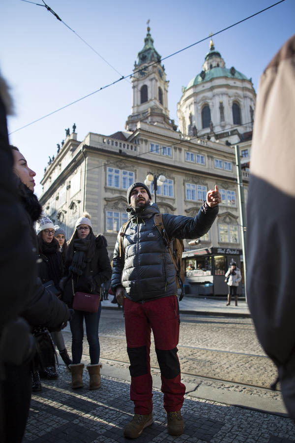Behin hiriaren ikuspegi orokorra hartua dugunean, oso gomendagarria da ordainpeko tourrak egitea. Moldava ibaiaren beste aldera eramango gaitu PRG Tours-eko “Gaztelua eta Mala Strana” ibilbideak. Hiri Zaharreko plazatik irten eta gutxira Karlos IV.aren zubia gurutzatuko dugu, eta beronen historia ezagutu ostean Mala Strana auzo xarmagarrira helduko gara. Ibilbideak Gaztelura doan tranbia-bidaia barne hartzen du eta berau bisitatzeko aukera ematen du, nahiz eta gaztelu osoa ikusteko aukerarik ez egon. Juany poz-pozik dabil gida lanean Pragan, bere lanaz egunero gozatuz: «Pragako gida turistikoa naiz eta lan duina da hau», aipatu du gida autonomoak. Alfonsok, ostera, bizitza nomadagoa dauka eta lanbide hau oso gustuko badu ere, ez ditu bestelako esperientziak alde batera utzi nahi. Latinoamerikara bidaiatu nahi luke eta, batek daki, egunen batean baita antzerki mundura itzuli ere.