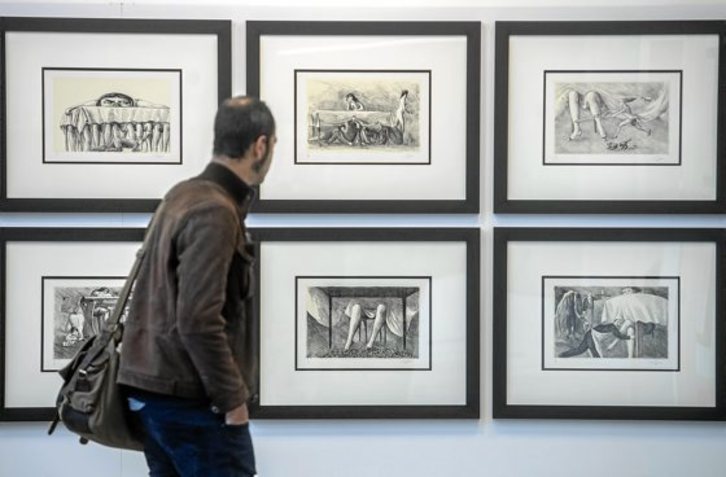 El 30 aniversario de la Semana de Cine Fantástico y de Terror de Donostia es el marco en donde se desarrolla “El Arte Fantástico de Roland Topor”. La sala Kutxa, situada en la cuarta planta del Centro Internacional de Cultura Contemporánea Tabakalera, acoge la interesante trayectoria del artista francés hasta el 8 de diciembre. Roland Topor (París, 1938-1997) fue un prolífico creador que se desenvolvió entre el dibujo, el cine, la escritura y la ilustración. Junto a Alejandro Jodorowsky y el filósofo Fernando Arrabal formó el Grupo Pánico a principios de los años 60. Muy cercanos en su fundación a los últimos surrealistas, cultivaron la expresión artística más cercana al teatro o a la performance. El desarrollo gráfico de Topor se ensarta firmemente en aquellos postulados. Un gran número de litografías de pequeño y gran formato, acompañadas en menor medida de xilografías y linograbados, revelan un trabajo ligado al cuerpo y cercano a la mueca o al gesto facial. La irreverencia y la aparición constante de elementos sexuales impregnan las diferentes series que tenemos a nuestra disposición.