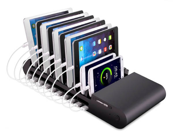 Una estación de carga USB que permite conectar diez dispositivos simultáneamente con total seguridad gracias a su salida máxima de 96W y protección contra sobretensiones y calentamiento. Es perfecta para oficinas, aulas, salas de reuniones e incluso locales de hostelería.