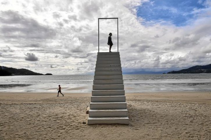 Una niña sube por unas escaleras que no conducen a ninguna parte y observa desde las alturas la tranquilidad de Patong Beach, la playa más importante de Phuket, que es la isla más grande de Tailandia y el destino por excelencia, después de Bangkok, de un país supeditado a un turismo tan bestial que generaba el 93% de sus ingresos. La pandemia del coronavirus lo ha cambiado todo y esta isla, que el pasado año recibió a más de nueve millones de visitantes, lleva seis meses sin ver extranjeros. Playas desiertas, la mayoría de sus 3.000 hoteles cerrados a cal y canto, mientras solo una pequeñísima parte de sus numerosas tiendas permanecen abiertas e intentan sobrevivir. Así que en los últimos tiempos, miles de desempleados han regresado a sus lugares de origen o han sufrido drásticos recortes salariales y en las calles aumentan las colas para la distribución de ayuda alimentaria. En 2019, el turismo supuso el 80% de los ingresos de Phuket y empleó a más de 300.000 personas. Semejante dependencia ha hecho exclamar a algunos de los propietarios de resorts de lujo y clubes nocturnos de sexo de pago que el covid-19 «es mucho peor que el tsunami de 2004». La situación obliga a la reflexión: riqueza para unos pocos, desarrollo anárquico, costas de hormigón, destrucción de ecosistemas... Los animales lo notan y recuperan su espacio, hay una especie rara de tortuga marina que vuelve a anidar en sus playas vacías.