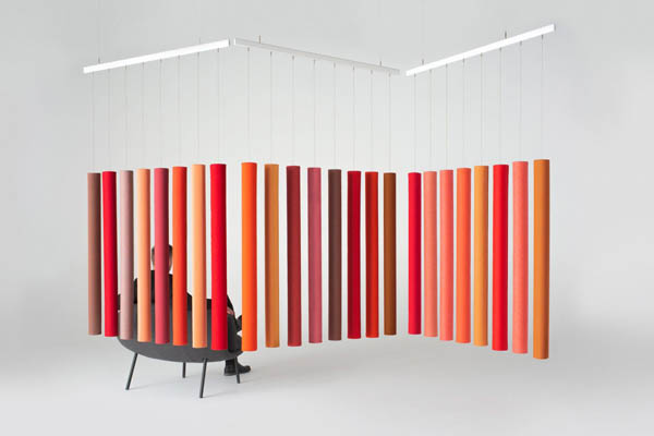 Ahora que tenemos que compartir espacios e intentar conciliar distintas actividades sin molestarnos, los palitos sonoros de Andrea Ruggiero pueden ser una divertida y práctica solución para separar ambientes. Fabricados a partir de materiales sobrantes del productor de mobiliario sueco Offecct, el diseño está inspirado en los tubos de cartón que se utilizan en envíos. El producto final está hecho de fieltro acústico absorbente de sonido moldeado en forma de tubo, que se mantiene unido por una cubierta de tela. Ecológico: el fieltro acústico se hizo a partir de una mezcla de restos textiles triturados y PET triturado derivado de botellas de agua.
