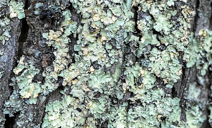 El liquen es una simbiosis entre un hongo y un alga y no es una planta parasitaria como es el muérdago, ni afecta al árbol como la hiedra. Esta asociación beneficia a los dos, el alga le da alimento al hongo y este le proporciona humedad y protección cuando la luz es muy intensa. Necesitan mucha humedad, al igual que los musgos de la corteza. Normalmente crecen en zonas húmedas y sombrías. Y en los arboles maduros o viejos. Los líquenes son de color verde grisáceo con formas muy variadas, filamentos formando cabelleras o frondas verticales.