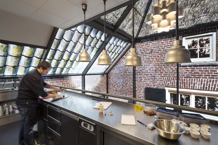 El edificio, llamado “Granja de vidrio”, reproduce una arquitectura tradicional, con raíces medievales, que ya casi no existe en Países Bajos. Casualmente, las normas urbanísticas del lugar dejaban construir un volumen muy parecido al que una granja tradicional ocuparía, con su tejado a dos aguas y sus testeros amansardados. El único problema era la escala; el planeamiento dejaba construir un volumen de casi una vez y media el volumen de una granja. Los arquitectos sabían que el edificio necesitaba de ese espacio, ya que se pretendía plantear un mercado con restaurantes, tiendas y una zona comunitaria para cursos de bienestar, con lo que se decidió cambiar la escala del edificio, reproduciendo en su fachada de vidrio el volumen original de la granja tradicional, pero multiplicado 1,6 veces.