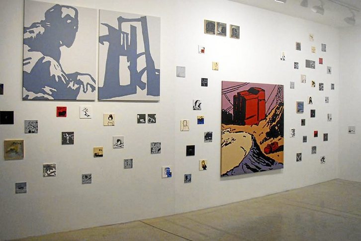 Edu López (Donostia, 1965) es el protagonista de la exposición que se inauguró a mediados de marzo en la galería Espacio Marzana de Bilbo con el título “Flop”. Hasta el próximo 30 de abril podremos disfrutar de la nueva muestra de quien fuera premio Gure Artea en el año 1998. López nos presenta una serie de cuadros cuya disposición en sala desdibuja cualquier convencionalismo museográfico habitual. Nos permite entrar en lenguajes instalativos y pictóricos a la vez, haciéndonos cómplices de una producción compulsiva que nos lleva de un lado a otro. Piezas de diversos tamaños que abarcan desde cuadros de gran formato a pequeños dibujos montados sobre cartón pluma. En ellos, imágenes que nos hablan desde el cómic más reconocible a cuadros de trazo acuoso, plagado de texturas, matices y pigmento. A pesar del aparente hórror vacui, todo acaba siendo una propuesta organizada de manera armónica y equilibrada. Pequeñas ventanas a una experiencia fragmentada que se va completando según vamos observándolas en su conjunto.