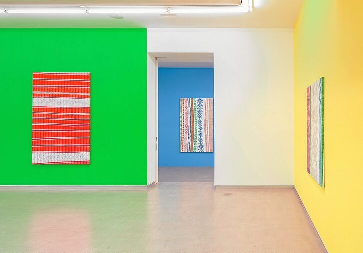 No muy lejos de allí, la galería Carreras Mugica inauguró el 18 de diciembre una muestra de la artista Gabriela Kravietz (Buenos Aires, 1965) que se podrá visitar hasta el 23 de febrero. “Still obsessive lady” recupera un proyecto iniciado a finales de los años 90, en el que Kravietz indagaba sobre la creación de varias mujeres artistas y su relación con la noción de feminidad. La producción textil desde una posición política en contraposición de una ornamentación supuestamente estética. Años después estas líneas siguen vigentes y la artista investiga diferentes patrones de bordados típicos de Euskal Herria para realizar una traslación poética hacia lo pictórico. Aquella creación que se pierde entre lo cotidiano y aquellos saberes que ocupan lo popular, traspasan la frontera hacia lo artístico a través de unas pinturas coloristas de gran tamaño que las reivindican como valiosas e imprescindibles. La sala es habitada por líneas y motivos que entendemos como familiares y que sin embargo adquieren un estatus que nos interpela desde un lugar que parecía no pertenecerles pero sin embargo, merecen.