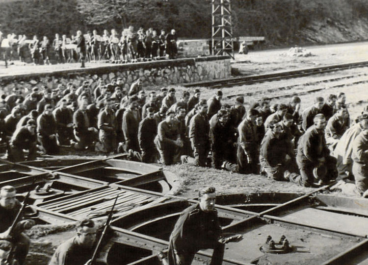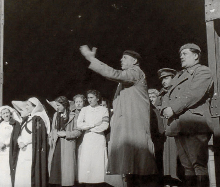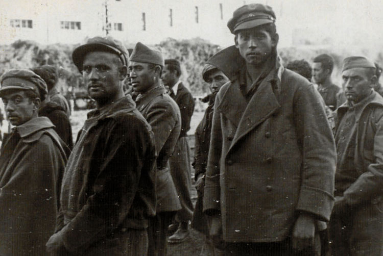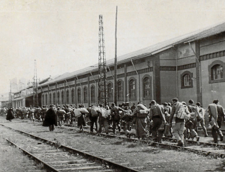«Jende asko zegoen biltegian. Jakina!, ez zegoen non etzan, eta batzuetan zutik eta beste batzuetan bultoren baten gainean jarrita igaro genuen nola hala gaua. Eguerdi aldera bigarren deia eduki genuen. Ordukoa, handik kanpora ateratzeko zen. Hamar-hamabi lagun, txapel-oker biren ardurapean. Norteko trenean sartu gintuzten Cardeñara eramateko».