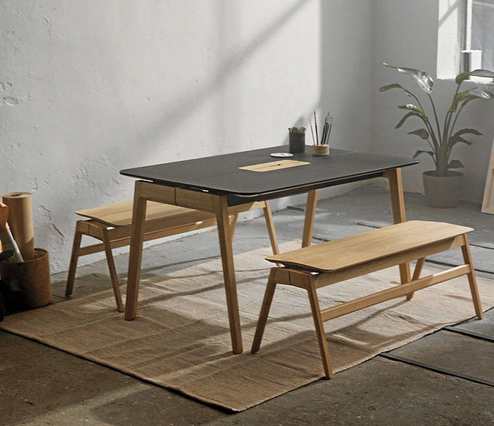 Diseñada para la socialización, la colaboración y la creatividad, la colección de muebles de madera Knekk amplía su familia. Comercializada por la marca escandinava Fora Form y diseñada por el noruego Jon Fauske, Knekk comenzó con un diseño de taburete de bar de madera en 2019 y ahora ha crecido hasta incluir un banco, una silla y una mesa. La familia se caracteriza por su uso de roble macizo y sus distintivas formas (muy de tendencia) que, según Fora Form, «están diseñadas para promover la colaboración activa, particularmente en escenarios de talleres y reuniones». La silla y el banco Knekk están disponibles con cojines de asiento opcionales para mayor comodidad. La silla también se puede unir en múltiplos para crear zonas de asientos en las oficinas. https://foraform.no/