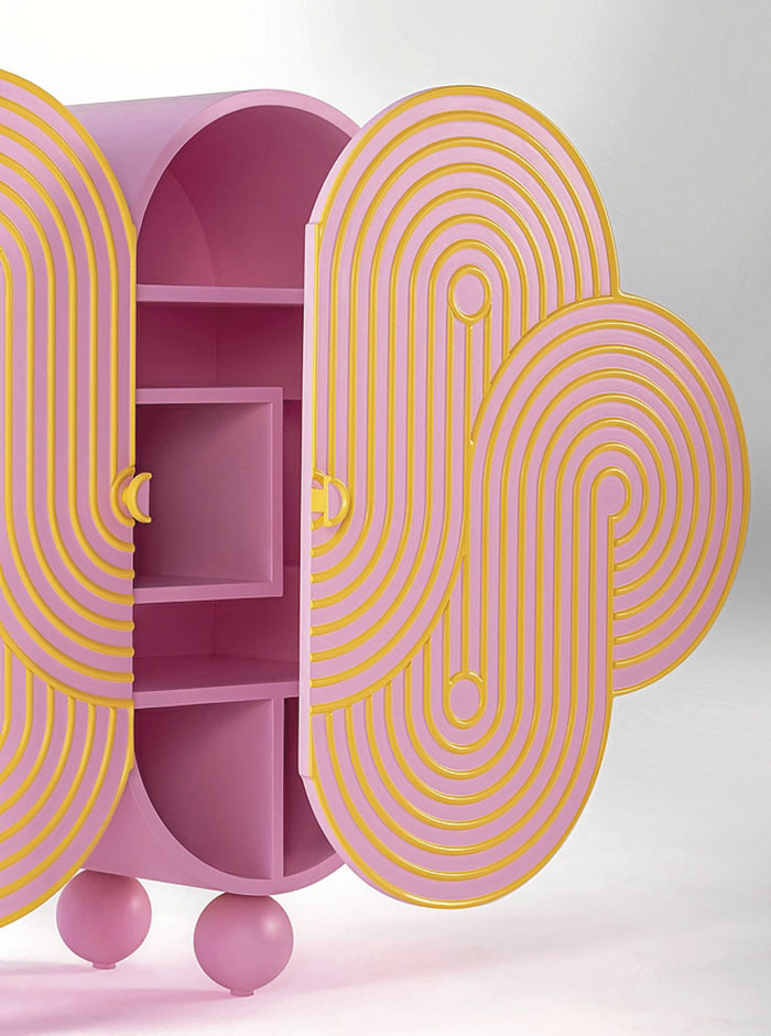 A 2.000 años luz del diseño monótono de muebles e inyectando una sensación de energía vívida en el hogar, el estudio de diseño 8877 Interiors & Deco, con sede en Shanghai, es toda una fuente de inspiración si buscas piezas energéticas y de manufactura exquisita. Evocando formas audaces, minimalistas y orgánicas, Cloud cabinet es una fantasía de color y de carpintería. De hecho, está inspirado en la imaginación, planteando que un objeto (que a priori es limitado y concreto), tiene todo el potencial de ser infinito y abstracto. Al igual que los humanos, parecemos limitados e individuales. Sin embargo, la imaginación nos permite crear sin limitación. La marquetería es increíble y divertida, consiguiendo que las extensiones infinitas de las líneas que fluyen sean paralelas entre sí y estén hábilmente conectadas en la curva. Las líneas se extienden y flotan desde la superficie del mueble, dándole vida y un movimiento continuo. Mucho power. www.8877interiors.com