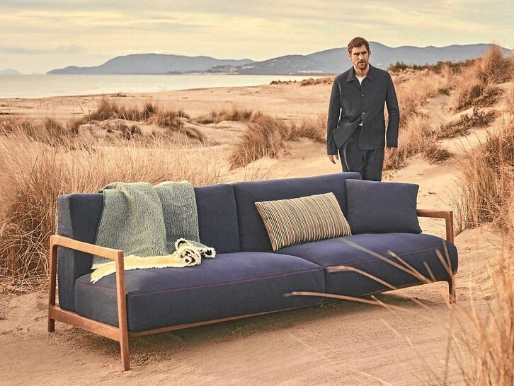 La nueva colaboración entre Paul Smith y los italianos De Padova nos invitan a disfrutar «el jardín como nueva sala de estar». La colección de muebles de exterior se basa en Everyday Life, que se lanzó el año pasado. La entrega inicial, que incluía sofás, pufs y sillones, así como mesas de centro y accesorios de cuero para la sala de estar, se ha ampliado para incluir piezas de exterior hechas con telas de exterior y marcos de madera iroko. También se ha añadido a la colección un sofá modular, diseñado para interiores, que se puede montar y organizar en varias formas. Las nuevas piezas de tapicería para exteriores coinciden con la silueta de líneas limpias de las piezas de interior y cuentan con los mismos detalles de correa y costuras en contraste, que están hechas de acetato de vinilo etílico (EVA) en lugar de cuero. La nueva colección también ve a la marca cambiar los materiales estándar por alternativas más sostenibles para sus productos de interior. Esto incluye plumas de ganso recicladas, Kapok, una fibra de semilla similar al algodón que da elasticidad al acolchado, y el cáñamo, una fibra natural y altamente duradera cuyo cultivo no requiere pesticidas ni herbicidas y también es capaz de regenerar el suelo.