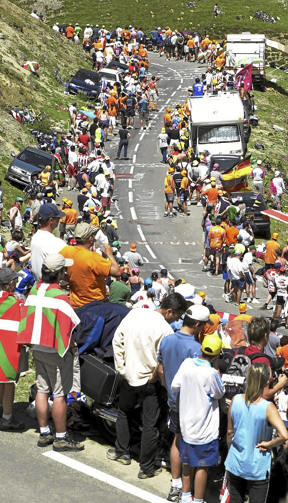 Se mascaba la tragedia. El hueco creció y creció hasta que en medio de Larrau, con la afición enfervorizada a la vista del paso del Tour, Miguel Indurain llegó a decir ‘no’ con la cabeza. Un ciclista que apenas se movía encima de la bicicleta iba aquel día completamente descompuesto.