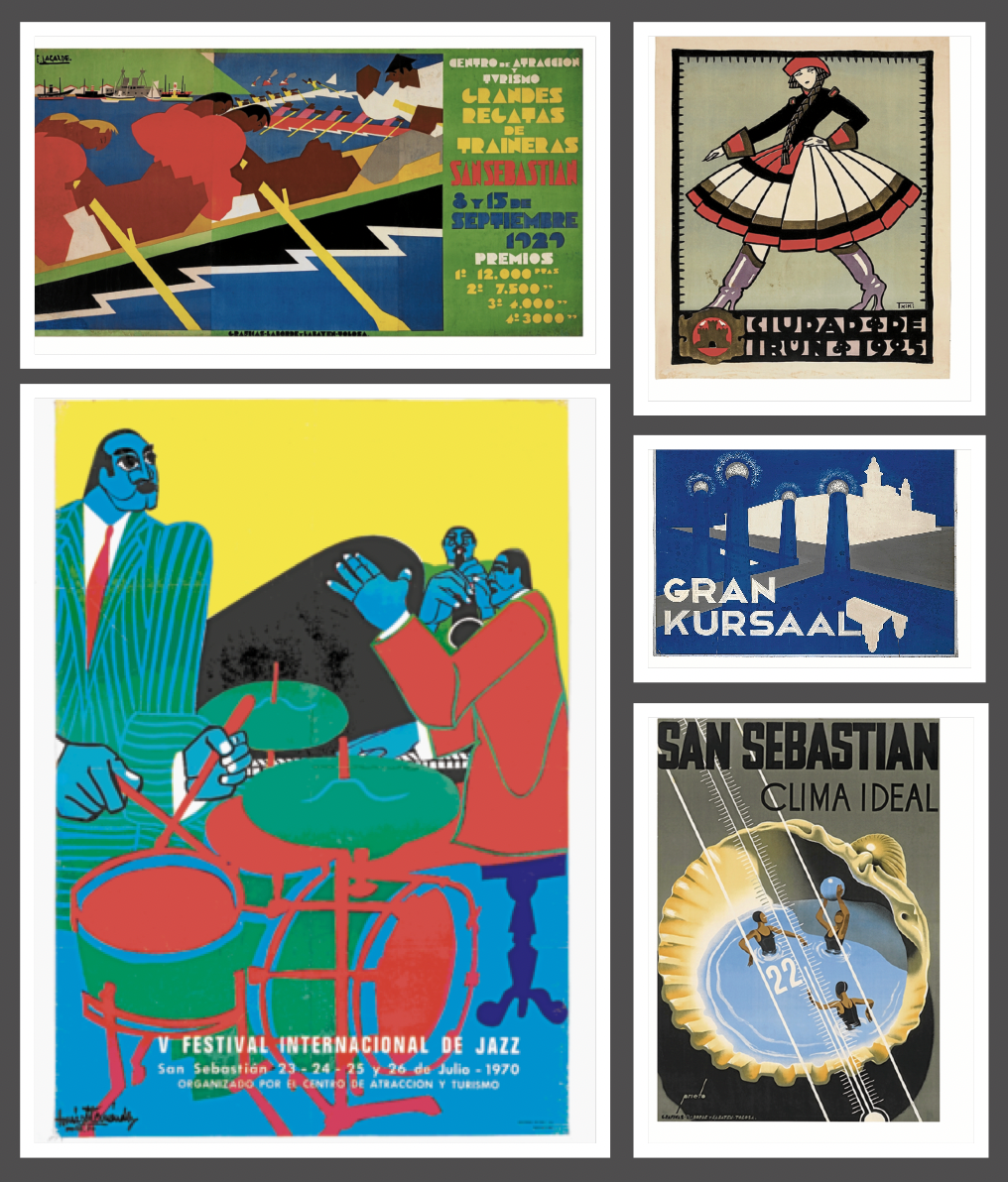 Obras de Pedro Antequera (1928-1929) y Eduardo Lagarde (1930). El de Zabalo es de una colección particular, los carteles restantes pertenecen al Museo San Telmo.