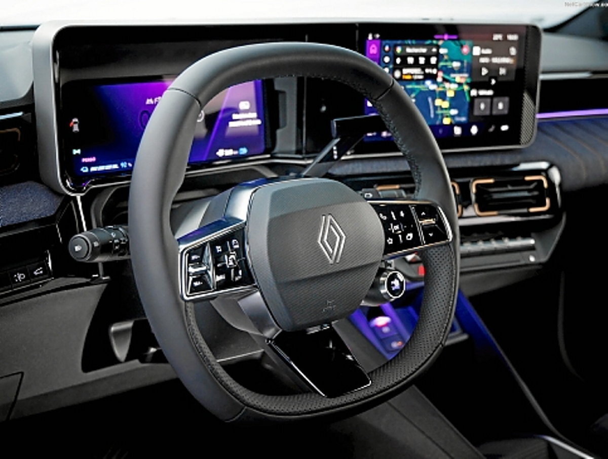 Y como era de esperar, su interior es lo que menos se parece al antiguo Renault 4, no en vano han pasado cinco décadas y el equipamiento tecnológico se impone en el nuevo modelo. Así, el salpicadero, el mismo que el del Renault 5 E-Tech, está presidido por una pantalla central multimedia de 10 pulgadas, bajo la cual encontramos las salidas de aireación y unos cuantos botones físicos. El resto del salpicadero presenta lineas rectas y sencillas, intercaladas con unas pequeñas rayas transversales, el único elemento del interior que sí recuerda un poco al clásico 4L.