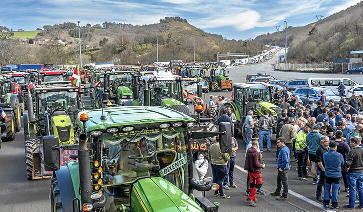 Las movilizaciones que ya venían realizando los agricultores en Ipar Euskal Herria tuvieron su eco en los territorios del sur a partir del 6 de febrero, con los tractores bloqueando en repetidas ocasiones especialmente ciudades como Gasteiz e Iruñea, siguiendo sobre todo el llamamiento de nuevas organizaciones surgidas al calor de estas protestas.