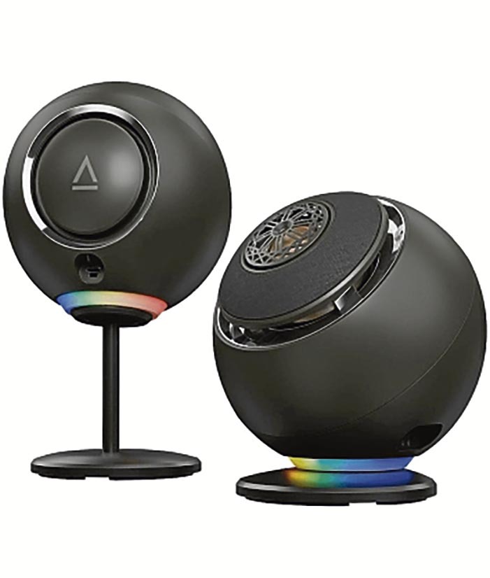 Estos altavoces de Creative mantienen el diseño esférico e inclinado propio de la gama, además de contar con luces RGB y soportes intercambiables. Disponen de un driver de 3” y un pico de potencia de 100 W, además de conexión Bluetooth 5.3, USB-C y minijack de 3.5 mm.