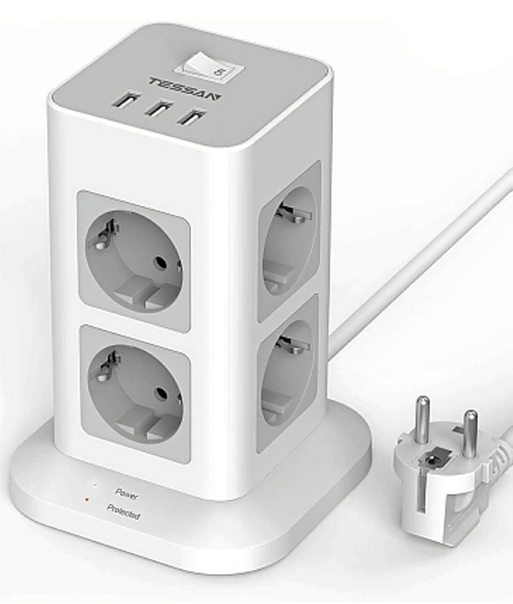 Esta regleta vertical, con ocho tomas de corriente y tres puertos USB, es una gran opción para ahorrar espacio. Mientras que gracias a su cable de dos metros de longitud, podemos elegir entre tres USB de tipo A o dos de tipo A y uno de tipo C, en ambos con interruptor.
