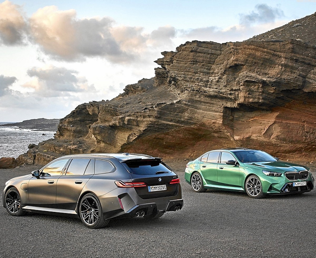 La marca alemana BMW ha presentado sus modelos «premium» M5 y M5 Touring híbridos, con 727 CV de potencia total y disponibles desde 163.500 y 166.100 euros, respectivamente. Los nuevos M5 llevan al máximo nivel las prestaciones del motor V8 de 4,4 litros con tecnología M TwinPower Turbo que es asistido simultáneamente por un motor eléctrico integrado en la caja de cambios M Steptronic de ocho velocidades. Disponen de una batería de alto voltaje de 18,6 kWh, lo que les permite una autonomía eléctrica de entre 67 y 69 kilómetros, por lo que reciben la etiqueta ambiental 0 de la DGT.