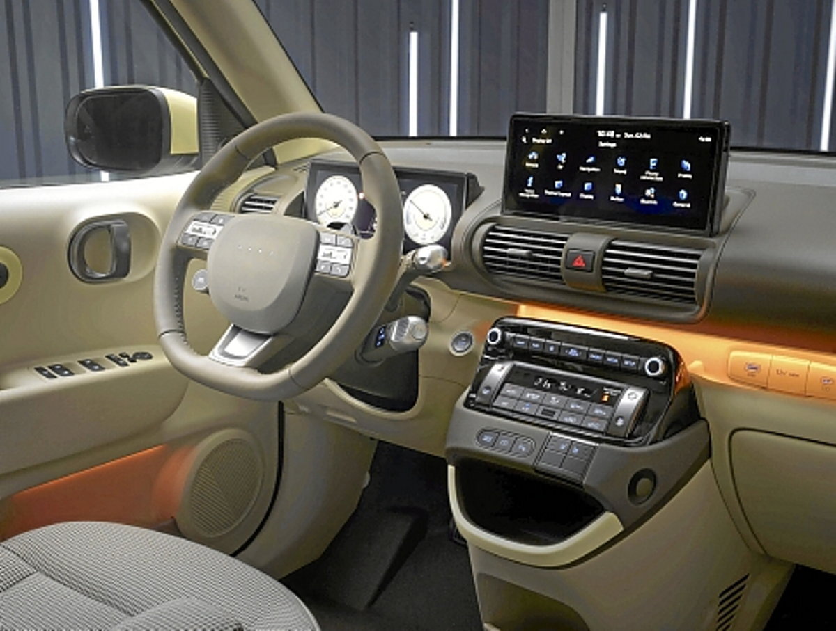 El Inster es un utilitario del segmento A, con una longitud de 3,82 metros y una estética que, por sus formas y proporciones, recuerda mucho a los coches japoneses. Destaca el frontal, con una amplia rejilla cerrada y unos grandes faros redondos que en realidad son las luces diurnas; un lateral musculoso con llantas de cuatro radios y marcados pasos de rueda; y una zaga cuya parte inferior reproduce el esquema del frontal, aunque aquí lo que más llama la atención son los grupos ópticos instalados en el portón, al estilo de los Hyundai Ioniq 5 e Ioniq 6.