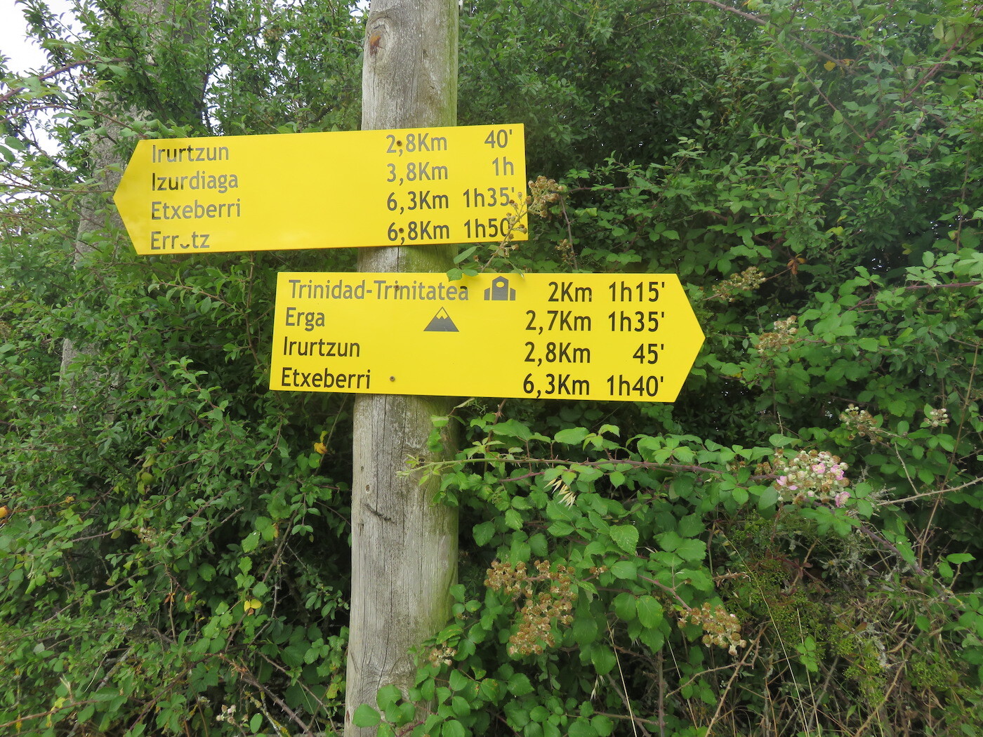 Haiek gertutik ezagutzeko aukera bada, Artola gailurrean barrena A-15 autobideraino jaitsiz. Horrek gure txangoa ordu pare batez luzatuko luke, baina, eta beroak eta trumoi hotsek itzuliko bidea hartzeko aholkatu digute. Biaizpe pasabidea sarri ikusiko duzu, autoan pasatzen bazara. Ergako Trinitate ermita ere bai, Irurtzun inguratzean, ederki ikusten baita. Hurrena geldialditxoa egin, eta bisitatu baseliza.