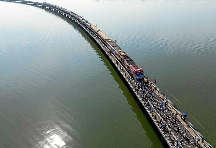 Hiru ordu eta erdiko bidaiaren ondoren, dozena bat bagoi baino gehiago dituen japoniar tren berrituak Pasak Jolasid presa zeharkatu du zubibide batetik. Hogei minutuz geldirik egongo da, bidaiariek selfieak egiteko aprobetxa dezaten. Gutxi dira panoramika ikusgarriaz zuzenean gozatzen dutenak. Denek dute kamera bat esku artean.