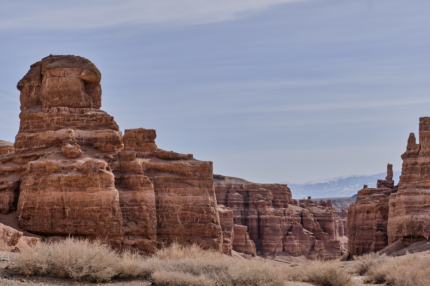Almaty ondo ikusi eta gero, ez da aukera txarra, nahiz eta gertu ez egon, Charyn arroila ikustea. Almatytik 200 kilometro ekialdera dago, Txinako mugatik hurbil, baina merezi du. Parajea oso ederra da, bere harri formazio okre gorriengatik. Milioika urtez Charyn ibaiak estepan 150 eta 300 metroko sakonera duen arroila ikusgarria zizelkatu zuen, eta gaur egun ikusten dugun argazkia oparitzen digu.