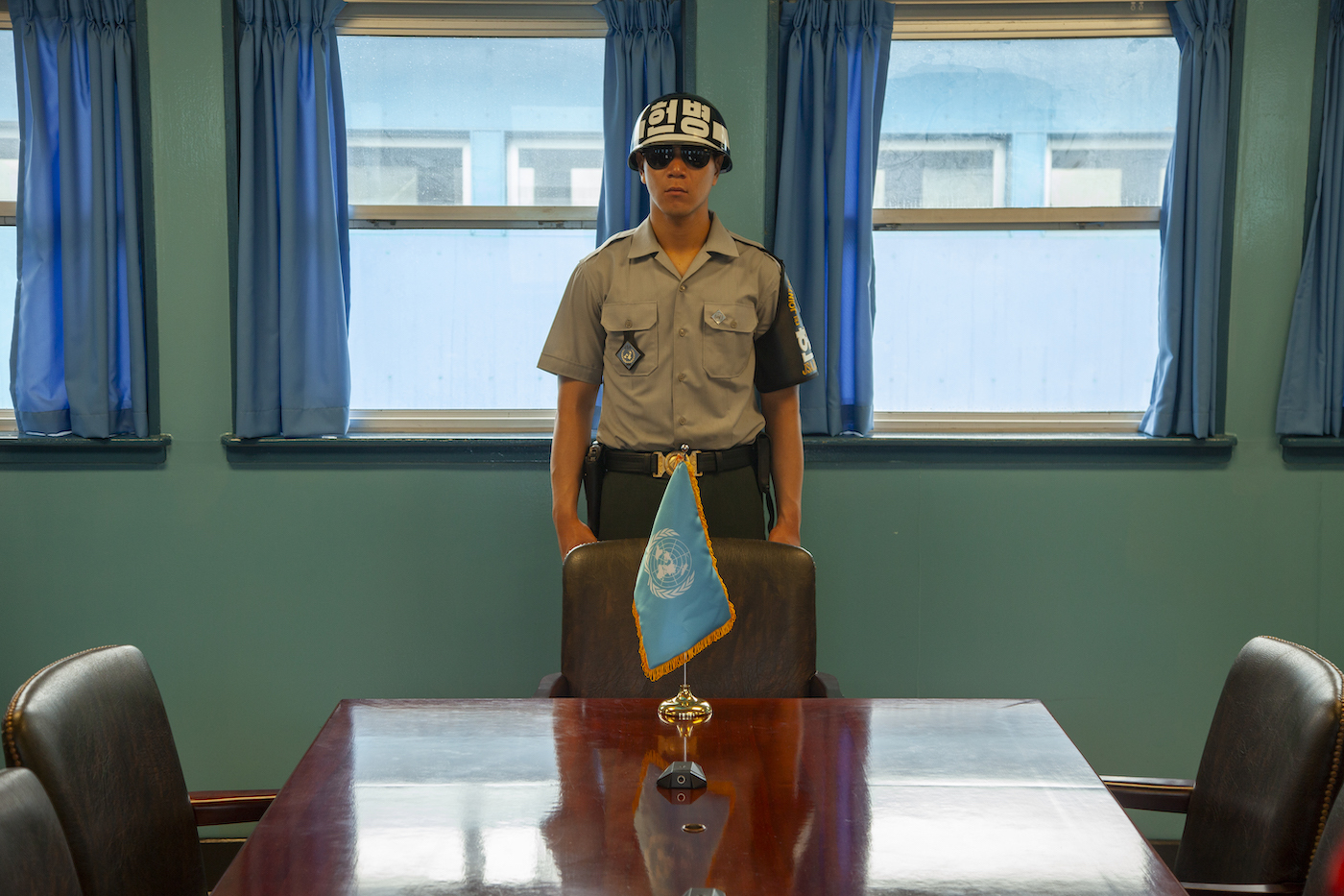 Negoziazio mahaia bi Koreen mugaren gainean dago, erdia iparraldean eta erdia hegoaldean. (Xabier BAÑUELOS)
