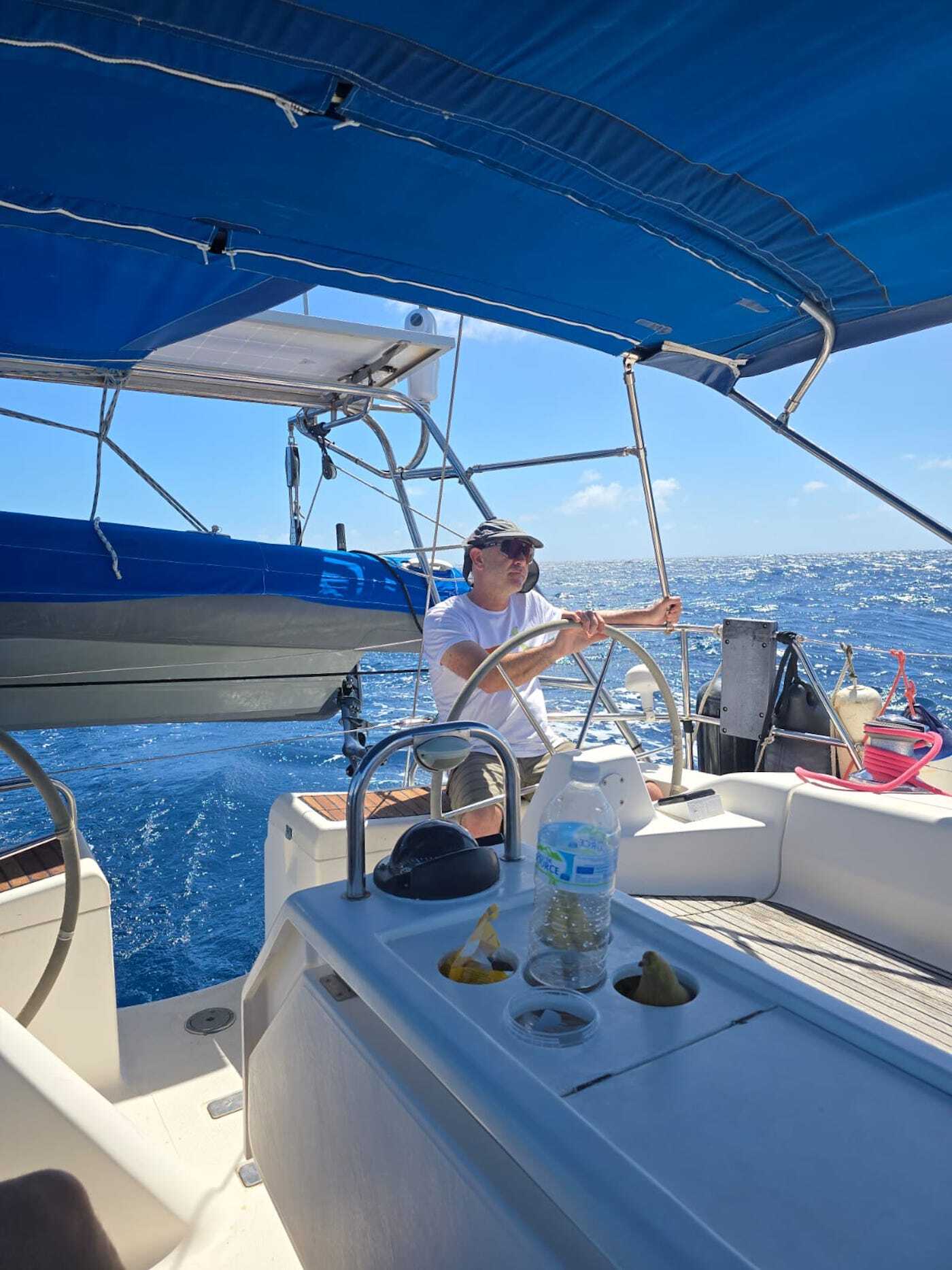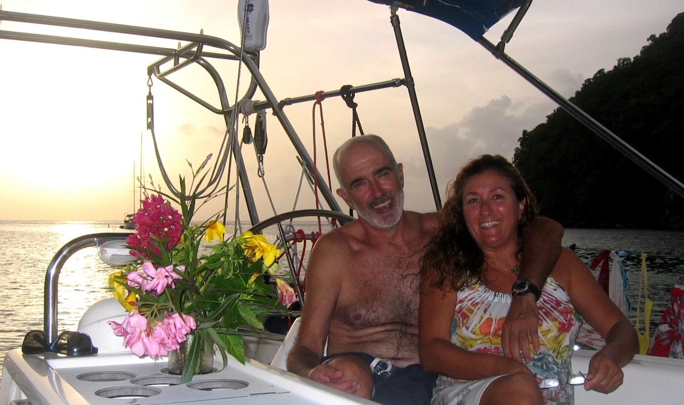 Natalia eta Armando, ‘Luzula’ ontziaren kubiertan, Les Pitons-en. (Armando Guilartek utzitakoa)