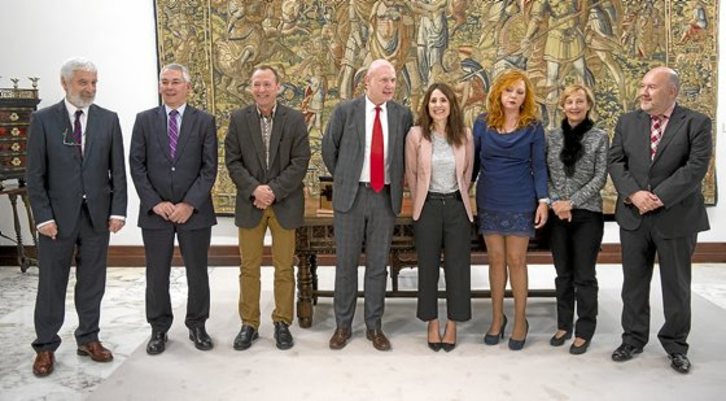 La Mesa del Parlamento recibió ayer a Iñigo Lamarca para agradecerle su trabajo al frente de la institución del Ararteko durante los últimos diez años. La presidenta de la Cámara, Bakartxo Tejeria, le hizo entrega durante la recepción de una réplica del símbolo del Legislativo autonómico, una obra del escultor Nestor Basterretxea