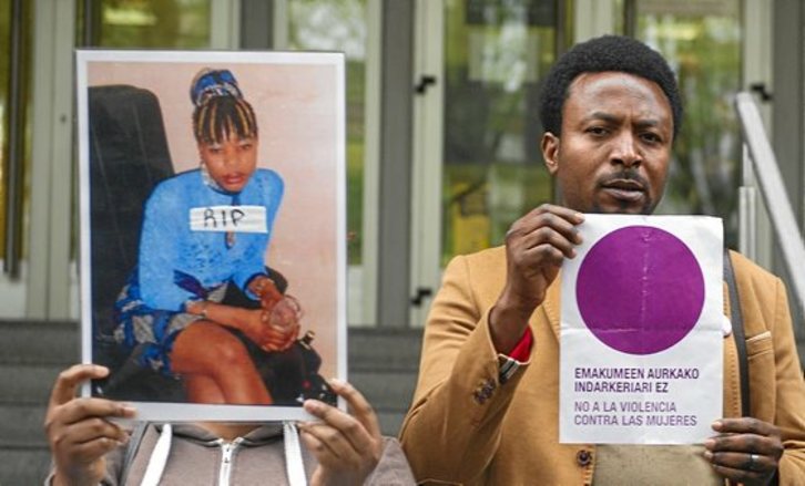 El autor confeso de ambas muertes, Juan Carlos Aguilar, reconoció ayer los hechos en respuesta a preguntas del fiscal. La defensa admite que hubo «alevosía», pero no ensañamiento, lo que centrará el juicio en adelante. El dolor quedó fuera del foco principal. Pero ahí estaba, para quien quisiera verlo. Un numeroso grupo de ciudadanos vascos de origen nigeriano venidos de distintos puntos se concentró a puertas del Palacio de Justicia para asistir a la vista. «Su familia hoy somos nosotros», manifestaban a GARA. Entre ellos, un grupo de mujeres que conocieron en persona a Ada explicaban que asistían para recordar a su amiga, para ponerle cara, y no paraban de mostrarsu imagen en alto.