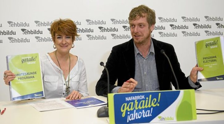 Bakartxo Ruiz y Maiorga Ramírez hicieron ayer la presentación del programa completo de la coalición para las elecciones en Nafarroa. El objetivo es que, en caso de que se produzca el cambio, este sea «profundo» y acabe de forma definitiva con «el régimen». EH Bildu es consciente de que el cambio necesita ser «plural», ya que se necesitará del acuerdo entre diferentes y que eso chocará con la trayectoria del gobierno hasta ahora, porque según afirmó Ruiz, «ha gobernado dando la espalda a la ciudadanía».