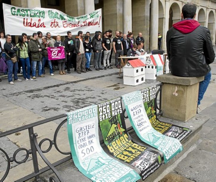 Modu honetan, Gasteizko Udalak bere jabegoan dituen 500 etxebizitzetatik gehienak hutsik daudela salatu zuten, honek etxebizitza eskubidea «urratzen» duela nabarmenduz. Era berean, gogora ekarri zuten «gero eta gehiago» direla hutsik dauden etxebizitzak.