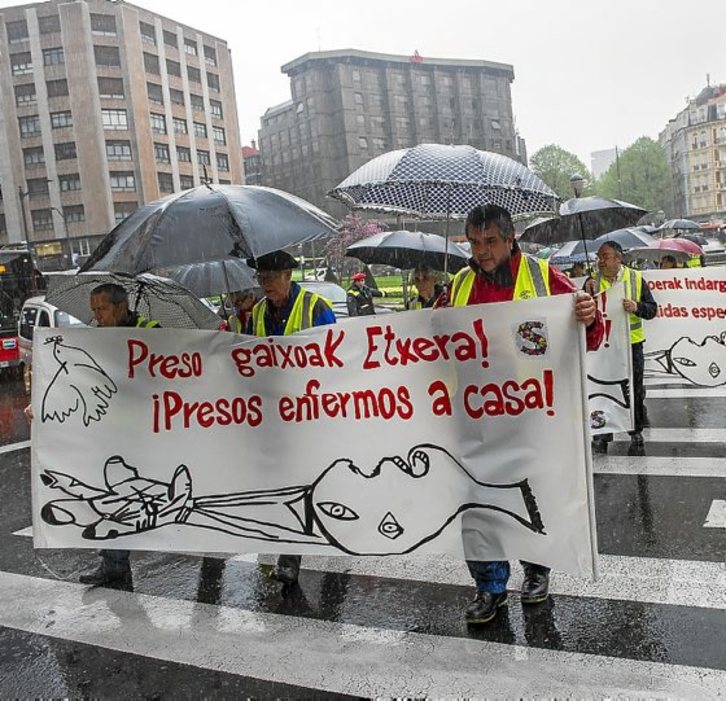 La red ciudadana Sare pidió ayer en Bilbo a los responsables del Consulado francés, Delegación del Gobierno español, Diputación vizcaína y Consistorio que hagan «todo lo que esté en su mano para acabar con la dispersión». Además, quienes participaron en la movilización denunciaron la situación de Ibon Fernández Iradi e Ibon Iparragirre, «dos presos gravemente enfermos», que debieran ser liberados por su delicado estado de salud.