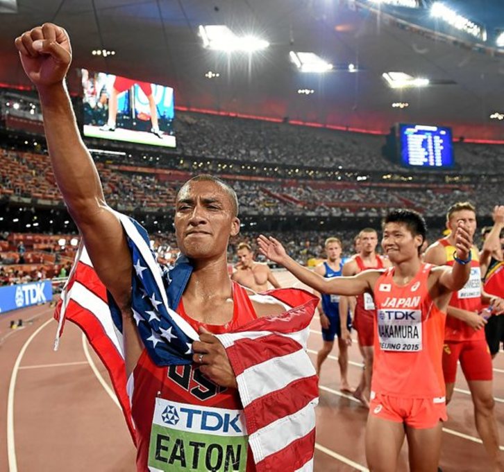 El nuevo récord mundial del estadounidense Ashton Eaton en decatlón (9.045 puntos, seis más que el suyo anterior) pasó casi inadvertido ante el revuelo que levanta Usain Bolt cada vez que comparece en El Nido, ahora para obtener su cuarto triplete en grandes campeonatos.