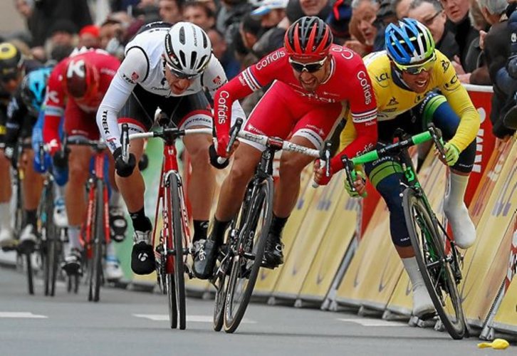 Bouhanni fue el primero en lanzar el sprint en la recta de llegada y a unos 20 metros de la línea de meta impidió que Matthews le rebasara por la iz- quierda, cerrándole poco a poco el paso y desplazándole finalmente con el codo. El australiano, que logró su segunda etapa en la llamada "Carrera del sol", evitó la caída con una enorme habilidad y reprochó la maniobra al francés, que también estuvo a punto de caer. La reclamación del Orica fue atendida ante la desesperación del de Cofidis, que fue relegado al tercer puesto. La segunda plaza fue para el italiano Niccolo Bonifazio.