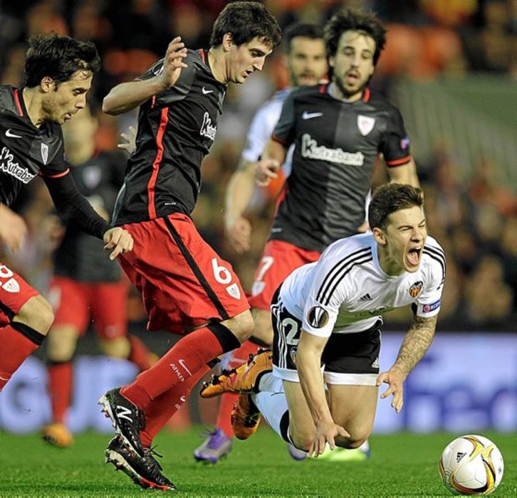 La vida son esos momentos en que necesitas que te pellizquen porque no es verdad que esto sea real. Como cuando Raúl García se sacó una asistencia de espuela que dejó un balón increíble a los pies de un Aduriz que no perdonó. La vida no se mide por las veces que respiras sino por los momentos que te dejan sin aliento. Como cuando las uñas no son suficiente placebo y aparece la mano alargada de Iago Herrerín para sacar en sus narices un cabezazo con el matasello de gol de Alcácer y que suponía el adiós a Europa. Dos momentos, dos suspiros, dos pestañeos, dos corazones encogidos, sea suerte o perseverancia, el Athletic estará hoy en el sorteo de cuartos final de la Euriopa League. Histórico, sufrido, estoico, taquicárdico, pero esto es la competición europea, lo disfrutamos la noche anterior entre Bayern y Juventus, lo padecimos en nuestras carnes en la tarde valenciana. Esto es fútbol. El Athletic jugó con fuego en plenas fiestas falleras hasta el punto de quemarse las pestañas en una primera mitad para ser olvidada y condenada a la hoguera, se repuso, confió, perseveró y tuvo premio, esa bendición solo para elegidos, no sujeta a estadísticas ni análisis sesudos, esa misma que otrora le guiara hasta la final de Bucarest. Sí, cuando casi se queda helado allá en Moscú ante el Lokomotiv, cuando estuvo contra las cuerdas ante el Schalke en suelo alemán, cuando el Sporting de Portugal no hizo su tercer gol de milagro allá en Lisboa, ese golpe de azar necesario para todo en la vida. Llámenle suerte o perseverancia, un servidor se queda con lo segundo.