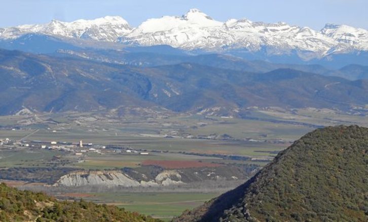 Entre estos dos pequeños y abigarrados pueblos, se encuentra la larga sierra de Nobla, un macizo montañoso de regular altura, que separa las jacetanas tierras del Canal de Berdún y la alta comarca de Cinco Villas, lugares de escenarios tranquilos y pintorescos. Además de disfrutar del próximo cordal del Pirineo de Jacetania, entre Peña Forca y Collarada, el paseo se mueve entre pistas, caminos y sendas que nos llevarán a la ermita de Casterillo de Mianos y la llamativa iglesia románica lombarda de Santa Basilisa de Bagués, asentada en un alto frente el pueblo.