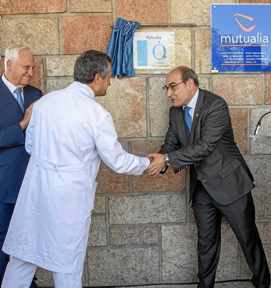 Mutualia Pakea de Donostia destapó ayer una placa que acredita el “Quality Healthcare” concedido por el Instituto para el Desarrollo e Integración de la Sanidad.Andoni CANELLADA | ARP