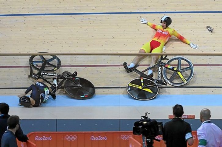La corredora vasca, que sufrió una caída en la primera ronda de keirin, fueeliminada en la repesca. Hoy se enfrenta a las clasificatorias individuales.