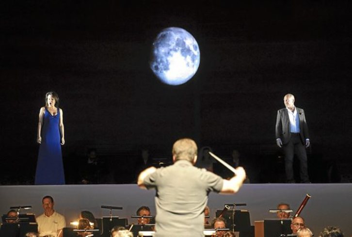 El elenco vocal era espectacular y cualquier contraparte teatral, a no ser que fuera de campanillas, quizá hasta hubiera molestado. La propuesta semiescénica que se inventó Salva Bolta, con los cantantes sin caracterizar e interactuando con bastante libertad personal sobre una plataforma alta al fondo del escenario, acompañados tan solo por unas sencillas proyecciones de vídeo, fue suficiente para evocar lejanamente una representación real y protegernos de la aridez de una ópera cuando se representa en formato de concierto. Otra cuestión distinta es por qué Bolta, o quien fuera, decidió realizar ciertos cortes en la partitura pero finalizarla con el sexteto moralizante que a menudo se suprime.