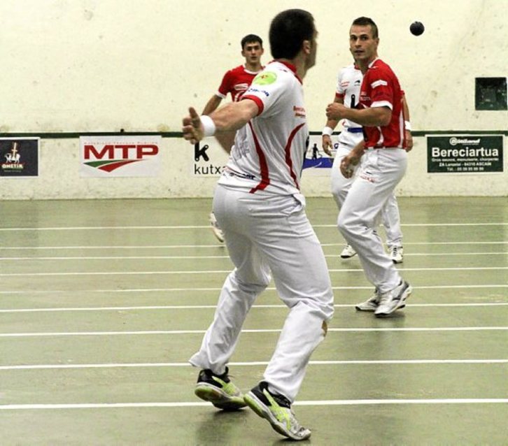 Final estu eta gogorra izan zen, eta emozioa ere gainezka izan zuen, baina jokoaren maila ez zen oso ona izan, bi bikoteek pilota asko galdu baitzituzten. Lehen zortzi kintzetan hiru berdinketa izan ziren, eta gero Larraldek eta Ezkurrak zuloa egin zuten, eta handi samarra ere bai, markagailuan 32-24 aurretik jarri baitziren.