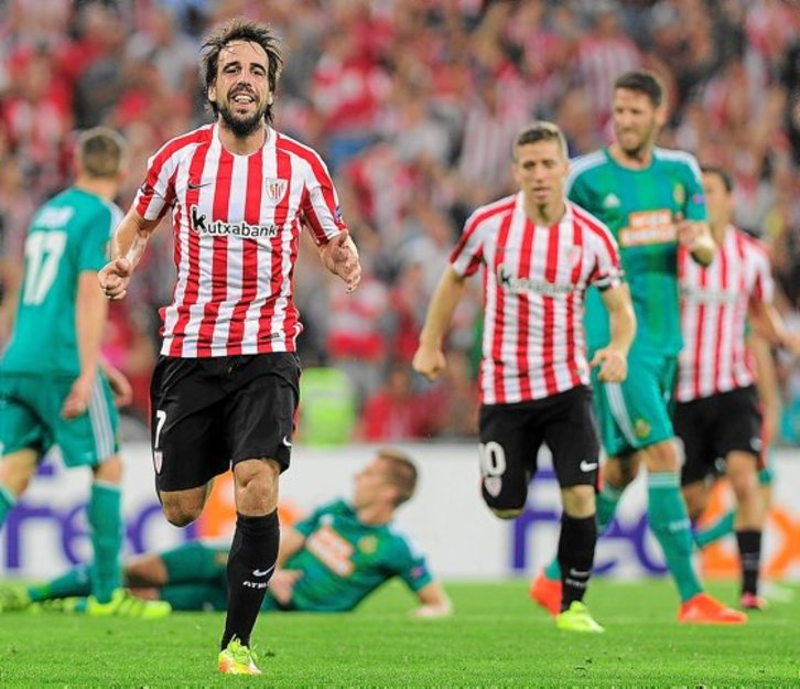 Érase un hombre a un balón pegado, érase un jugador superlativo. Érase Beñat Etxebarria, que será difícil olvide este mes de setiembre, tanto como la ovación final que le dedicó San Mamés. El jugador que ilumina a sus compañeros, que no solo marca los tiempos y ritmos de los rojiblancos, que no solo se calza el mono de trabajo cuando debe, que sirve centros en bandeja de plata, sino también el que desatasca partidos encallados como el de anoche, con un golazo desde la frontal que da vida en Europa a unos leones apagados. Un duelo que se atragantó más de lo que cabía esperar, ante un rival que dio mejor impresión, al menos en las dificultades que planteó, de lo que cabía esperar. Tanto que el Athletic acabó pidiendo la hora, sobre todo en un final agónico en el que Williams desaprovechó un cara a cara con el guardameta para el 2-0 y esa corta ventaja que había dado el de Igorre casi se trunca en un córner envenenado de los centroeuropeos, que por suerte acabó en barullo y el culo apretado al asiento. El chiflido final del colegiado francés casi que endulzó su esperpéntica actuación tres cuartos de hora antes, cuando un gol de Williams derivó primero en penalti a Aduriz y lugo en fuera de juego del ‘11’. Para mear y no echar gota.