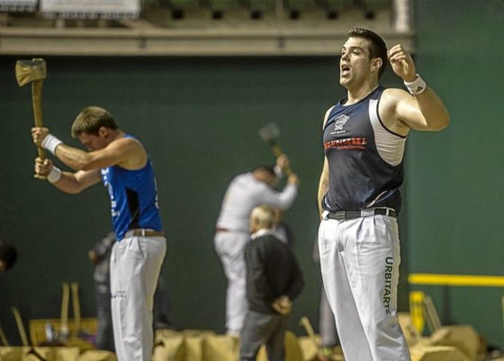 Gizonezkoek ere minutu eta erdi izan zuten ahalik eta jasoaldirik gehien egiteko, baina kasu honetan 18 kiloko ingudea erabili behar izan zuten. Lehian, berriz, sei partaide, eta hemen ere ez zen inongo ezusterik izan. Jon Lapazaran zen irabazteko faborito nagusia eta bera gailendu zen; atzetik zituenei alde nabarmena ateraz, gainera; izan ere sei jasoaldiko zuloa egin zuen.