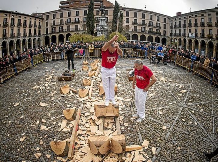 Joxe Ugarteburuk eta Javier Elorriagak marka oso ona jarri zuten atzo Zumarragan. Ezkiokoak 60 urte ditu, eta 63 urte Zumarragakoak. Txanda librean 20 kana-erdiko ebakitzen aritu ziren, horrela 60 urtetik gorako bi aizkolarik inoiz egin gabeko marka jartzeko asmoz.